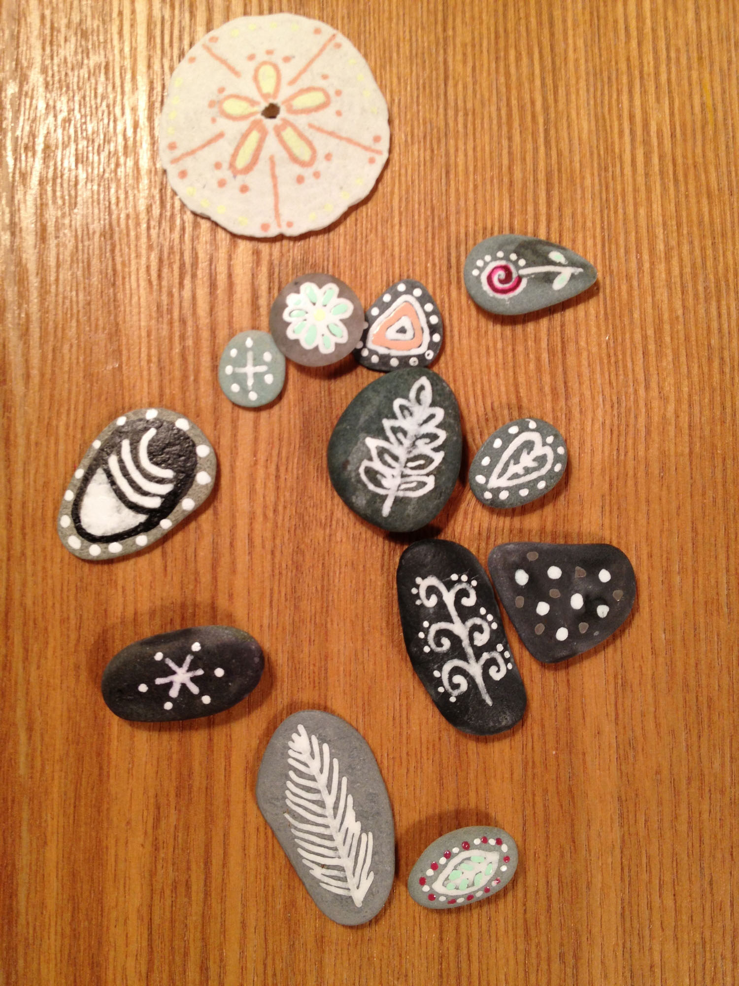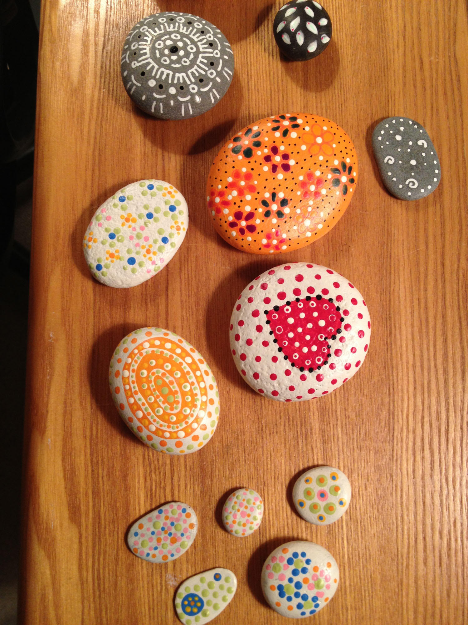 Painted stones Having a rather large collection of beautiful found round rocks has inspired me to paint on some of them. They make great paperweights or just a nice thing to hold in your hand. They are lovely sitting on a side table. Share this: Click to share on X (Opens in new window) X Click to share on Facebook (Opens in new window) Facebook Like Loading...